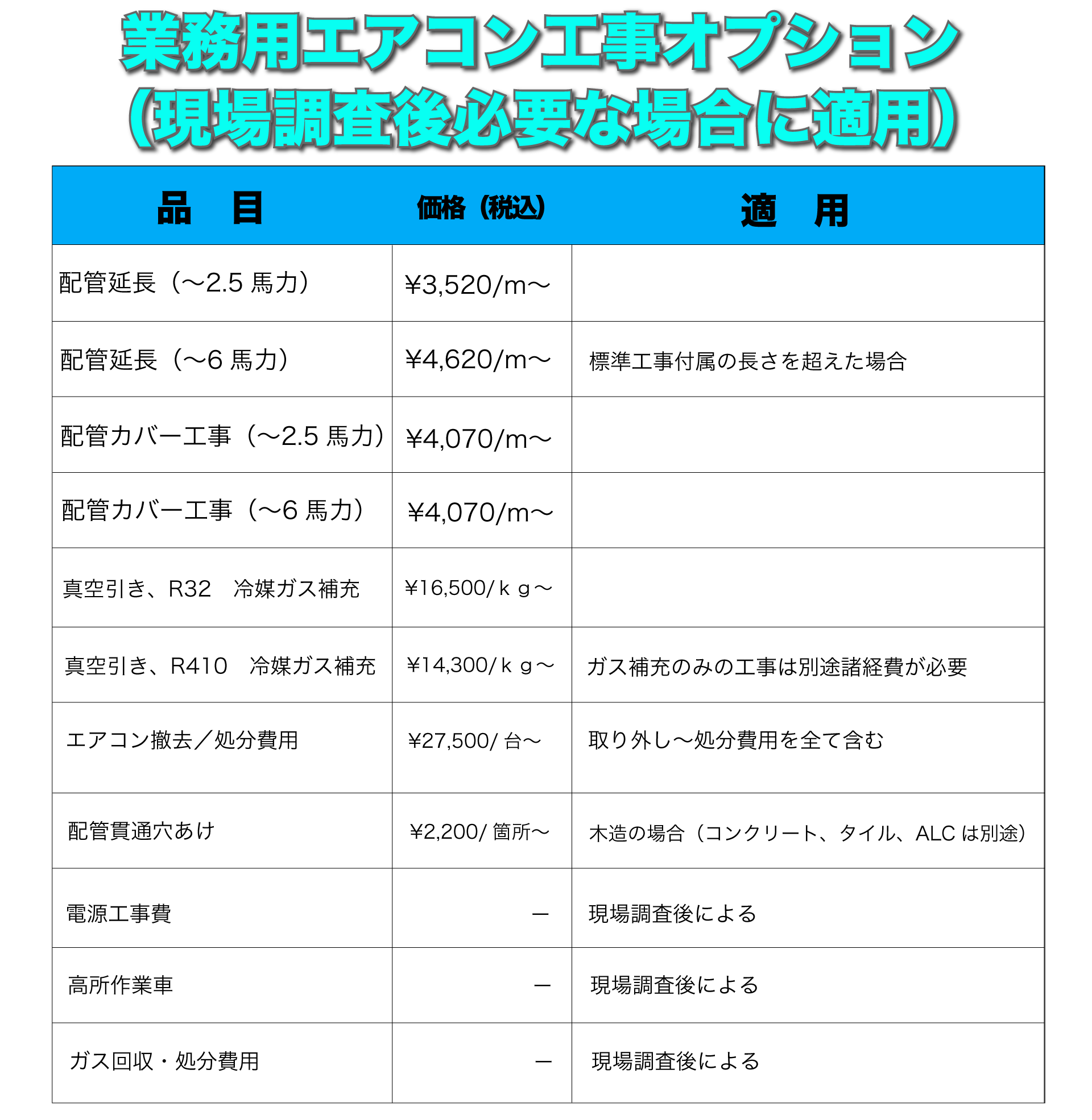 業務用エアコン:室内機1台/室外機1台の設置工事